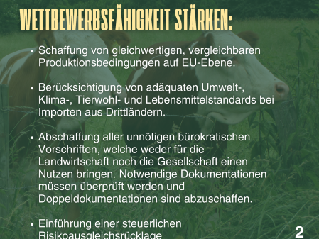 Der internationale Wettbewerb bildete einen weiteren Schwerpunkt. Billigimporte aus dem Ausland setzten die heimischen Erzeuger unter Druck, obwohl in Deutschland besonders hohe Standards einzuhalten seien. Hubert Bernhard betonte, dass gleiche Wettbewerbsbedingungen unverzichtbar seien, um die Betriebe langfristig zu sichern.